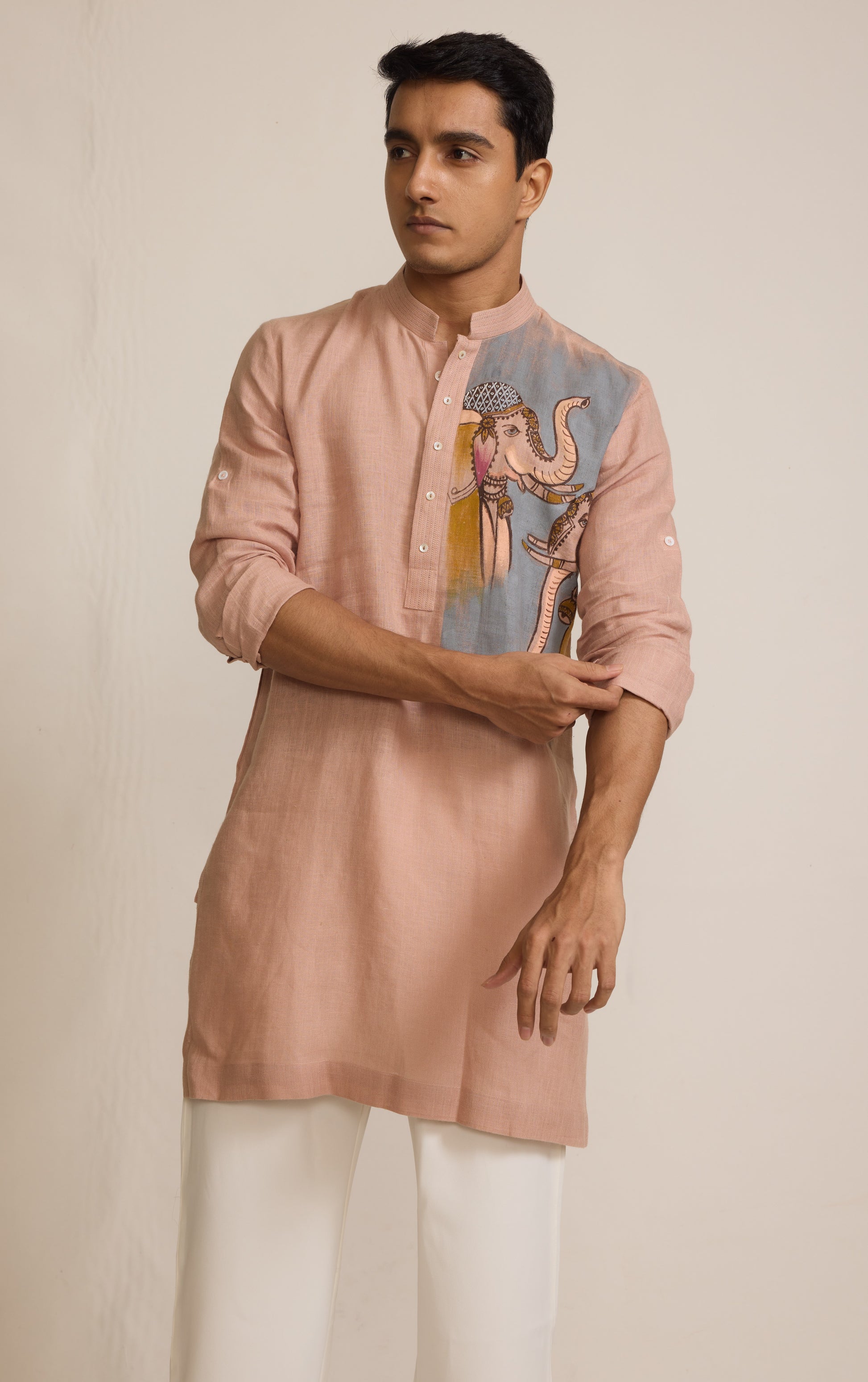 Color: The main body of the kurta is a soft, muted tone, appearing to be a light onion pinkĀ color.